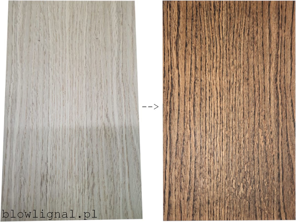 Prezentacja efektu przed i po. Oczywiście na zdjęciu bardzo trudno uchwycić pełne piękno oraz wrażenia dotykowe, jakie daje tak wykończone drewno!