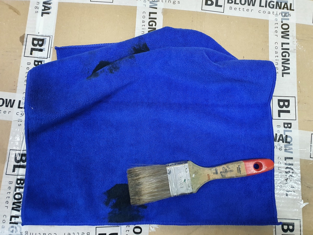 Po szlifowaniu formatka musi zostać dokładnie odpylona. Następnie nakładamy drugą warstwę mieszanki Megapur (nadal w tych samych proporcjach 10:1 i 40% rozcieńczalnika).