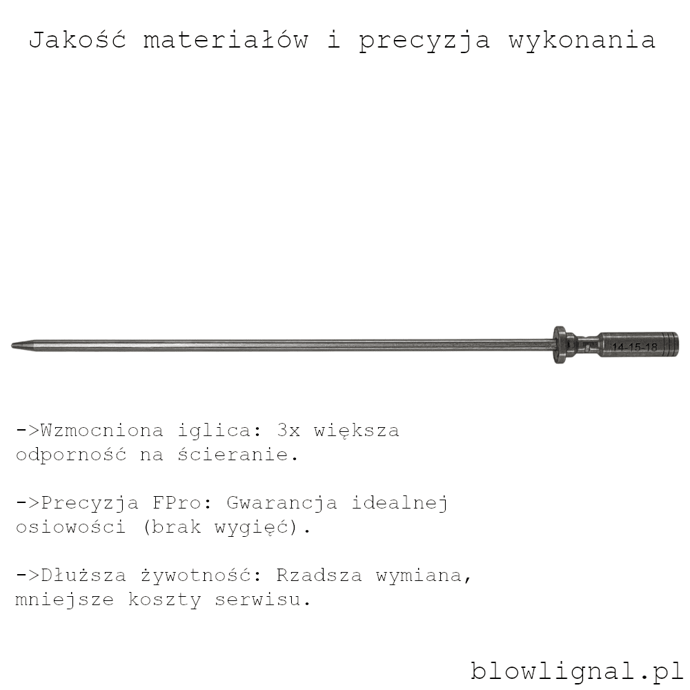 • Iglica Premium: Wzmocniona stal o wyższej odporności na ścieranie i wyginanie zapewnia idealną osiowość i szczelność przez lata.